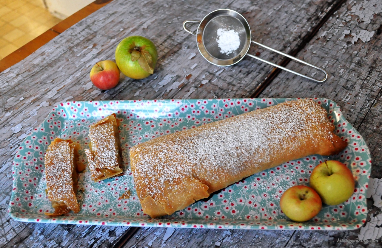 Apple pies, pumpkin breads, apple bars and pumpkin flans… those are the desserts that seem to rule the world from Halloween on. And while I love a slice of the classic apple pie with a scoop of vanilla ice cream melting on top, there are so many other ways to use the apple. For Hanukkah, I make a big vat of apple sauce that, much like that little bit of oil, lasts all eight nights. I also enjoy apple cakes and apple slices dipped in chocolate because there’s no rule that says apple pie has to be the dessert for Thanksgiving and Christmas. Why can’t it be an apple bread pudding or a clafoutis? Why couldn’t it be… a strudel?
