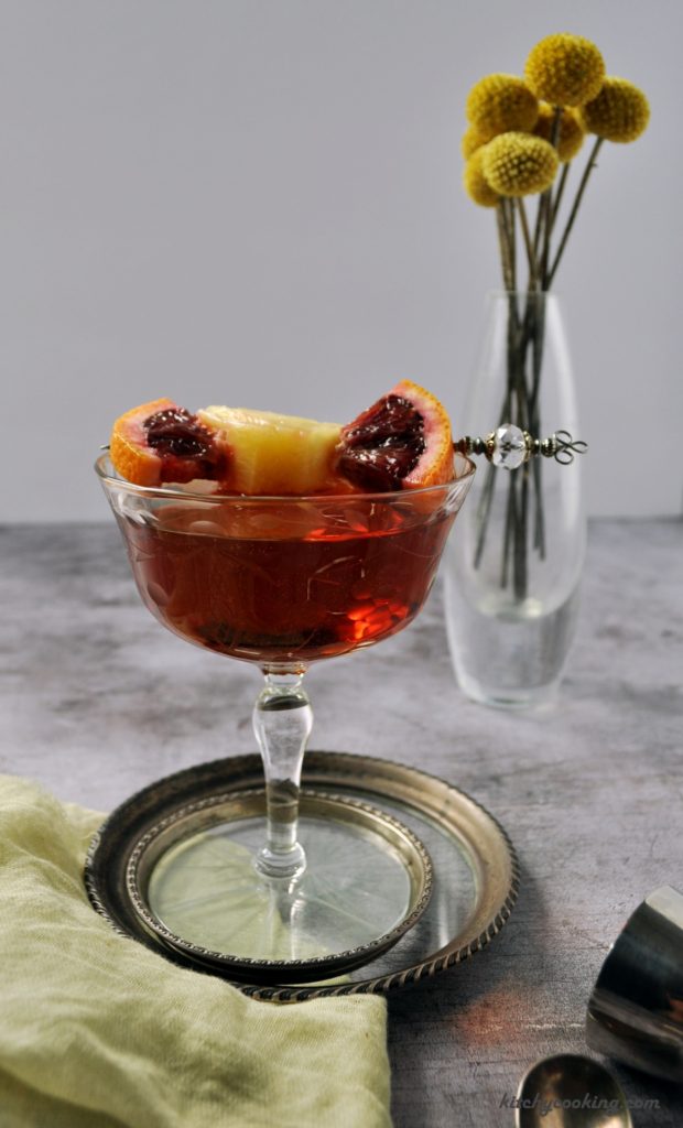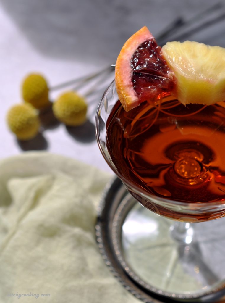 Then we come back to that pineapple and orange garnish. That garnish changes the whole concept of the cocktail. What could have been a riff on an Old Fashioned or Manhattan suddenly is something completely different. It’s something that could be enjoyed after dinner in a leather arm chair or on the beach with a salty breeze rustling the palm fronds above. However you choose to sip it, enjoy it before the weather gets too warm. After that, you might as well dive headlong into summer and all the tiki drinks you can handle.