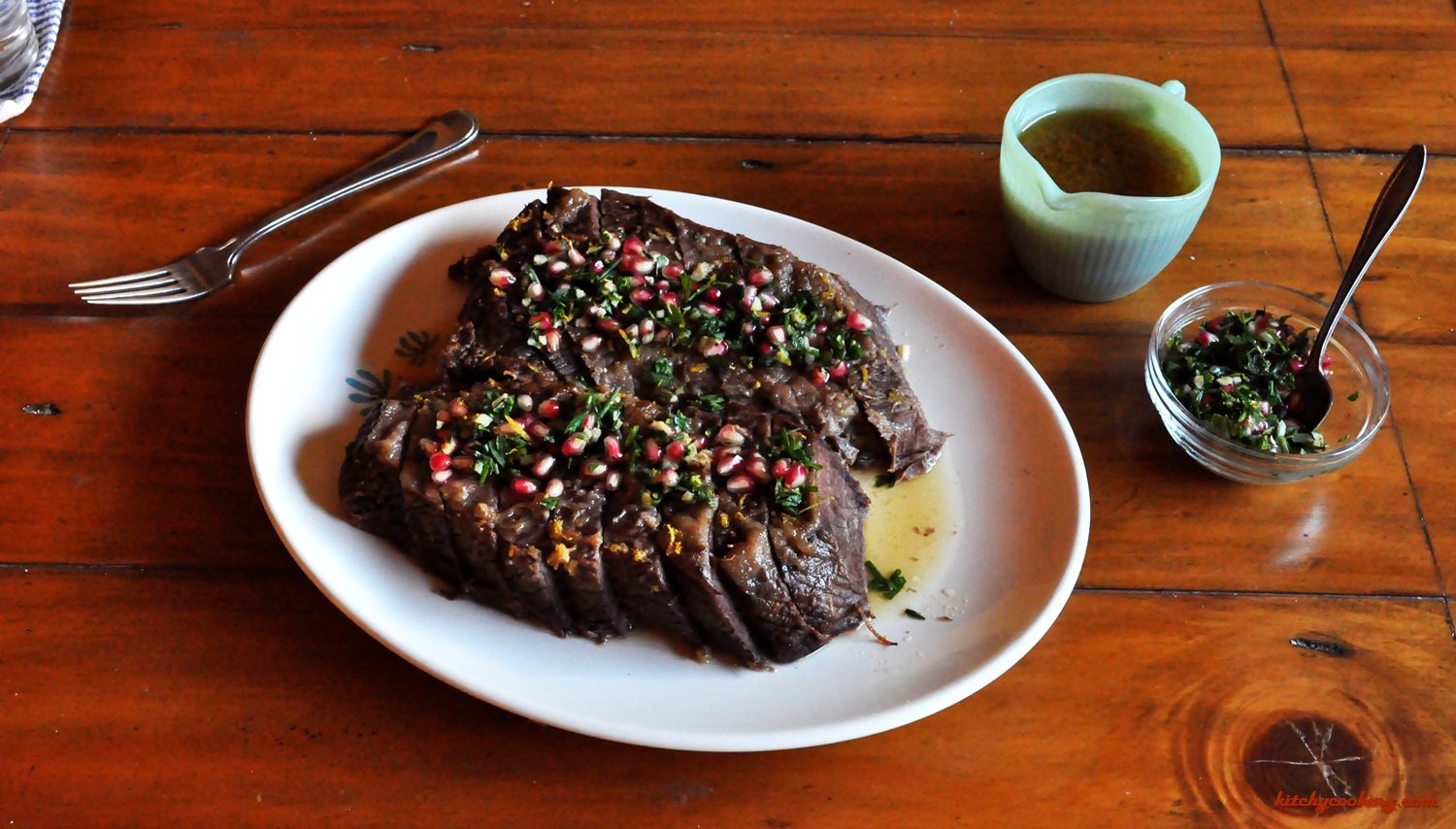 Monday was Labor Day and that usually means one of two things. The kids are finally back in school and Rosh Hashana is right around the corner. I love Rosh Hashana. It means apples and honey, challah and brisket, and plenty of wine. All that delicious food… I just can’t get enough. So, since Rosh… Continue reading Lemony Brisket with Pomegranate Gremolata