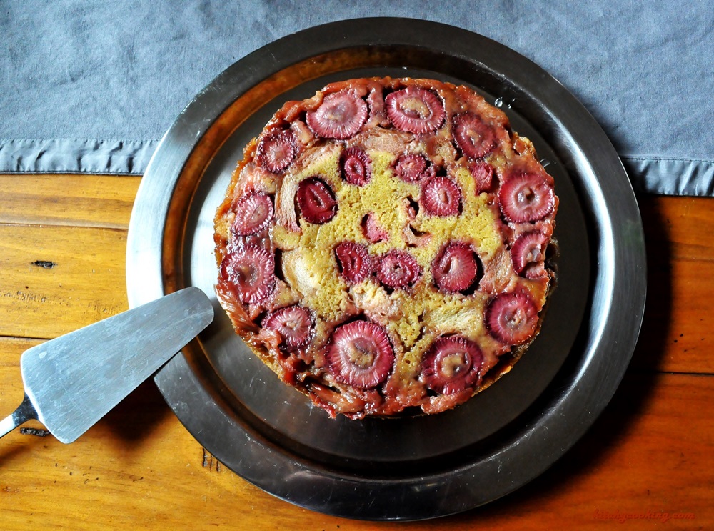 Strawberry Rhubarb Cornmeal Upside Down Cake